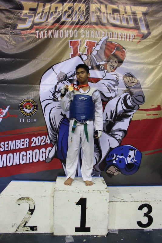 Sleman (MTsN 9 Sleman)- MTsN 9 Sleman kembali mengukir prestasi di kancah nasional. Lovano Ramadan Prisagino, siswa kelas VIII C, sukses meraih juara 1 pada kategori Kyorugi Junior Putra U65 Kg di ajang bergengsi Kejuaraan Nasional Indonesia Super Fight Taekwondo Championship 2024. Kompetisi ini berlangsung pada 21-22 Desember 2024 di GOR Among Rogo, Yogyakarta.