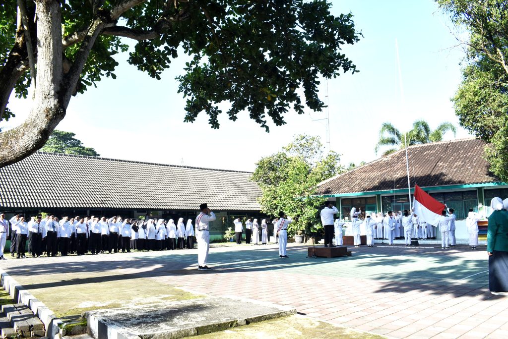 Bertindak sebagai Inspektur Upacara, Kepala MTsN 1 Sleman, Sutarjo, membacakan amanat Menteri Agama Republik Indonesia. Dalam amanat tersebut, beliau menyampaikan pesan penting mengenai semangat kebersamaan dan moderasi beragama dalam memperkuat persatuan dan kesatuan bangsa.