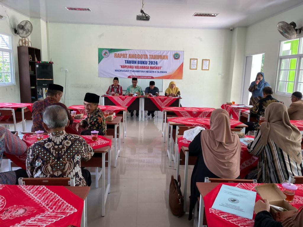 Kemenag Sleman News (MTsN 4 Sleman) – Rapat Akhir Tahun (RAT) Koperasi Keluarga Maskot (KKM) MTsN 4 Sleman sukses digelar, Sabtu (4/1/2025). Dengan mengusung semangat transparansi dan kebersamaan, acara ini dihadiri oleh anggota koperasi yang berjumlah 118 orang. RAT menjadi agenda tahunan yang sangat penting untuk mengevaluasi kinerja koperasi selama setahun terakhir dan menyusun rencana strategis untuk tahun berikutnya.