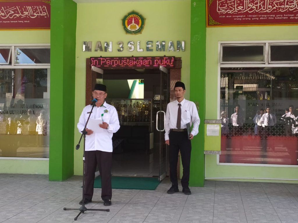 . Bertindak selaku pembina upacara, Jazim Kholis kepala MTsN 6 Sleman. Upacara bendera diikuti oleh seluruh guru dan pegawai madrasah integrasi.