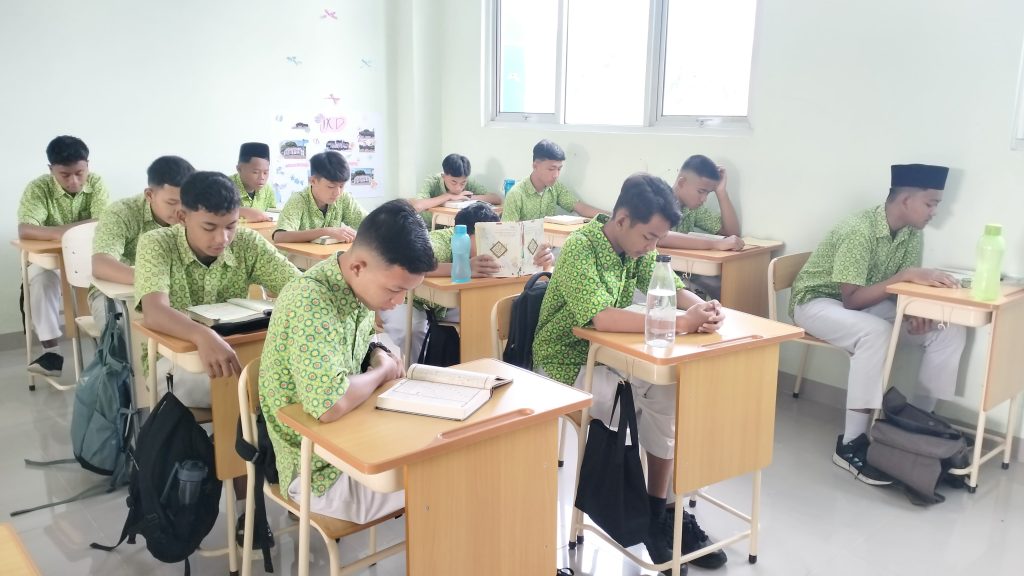 Kemenag Sleman News (MTsN 9 Sleman) – MTsN 9 Sleman menggelar acara muqoddaman Al-Qur’an yang berhasil menuntaskan sebanyak 5 kali khatam pada Rabu (8/1/2025). Acara ini merupakan bentuk kontribusi MTsN 9 Sleman untuk melengkapi total 79 khatam Al-Qur’an yang dibaca oleh seluruh satuan kerja Kementerian Agama Kabupaten Sleman dalam rangka tasyakuran Hari Amal Bakti (HAB) ke-79 Kementerian Agama Republik Indonesia. Muqoddaman dimulai pada pukul 07.00 β 10.00 WIB dan dilaksanakan secara serentak di berbagai ruang, mulai dari ruang kelas, ruang guru, ruang TU, dan musholaMTsN 9 Sleman.