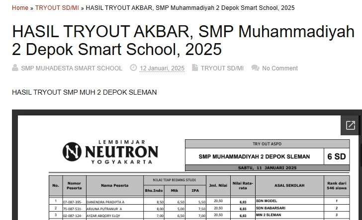 Cetak Rekor, Siswa MIN 2 Sleman Raih Nilai Tertinggi TO