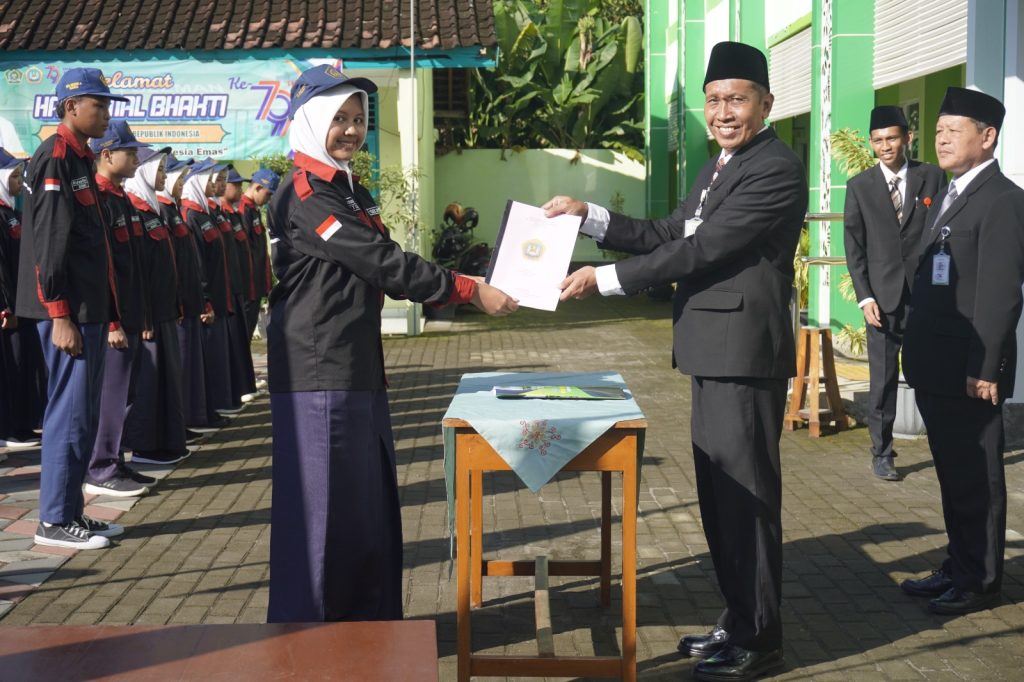 Kepala Madrasah MTsN 4 Sleman, Harsoyo, S.Pd., turut memberikan amanat dalam acara ini. Ia menekankan pentingnya kerja sama dan kepemimpinan yang bertanggung jawab. “Pengurus OSIS adalah contoh bagi siswa lainnya. Jadilah teladan yang baik dan wujudkan program kerja yang membawa manfaat bagi seluruh warga madrasah,” pesan Harsoyo.