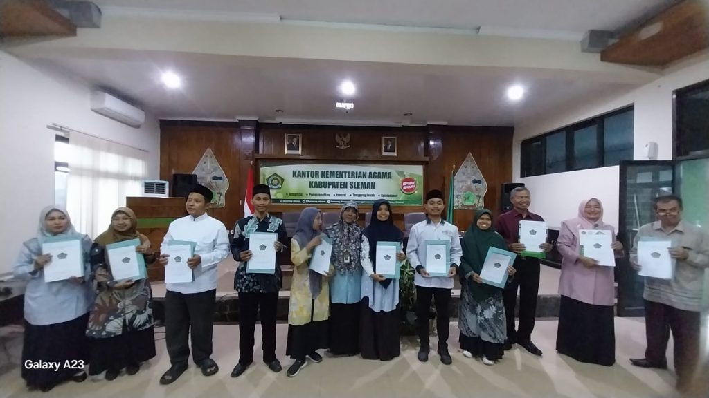 Kemenag Sleman News (MTsN 9 Sleman)- Siti Juwariyah selaku Kepala MTsN 9 Sleman menerima secara simbolis penyerahan hasil Penilaian Kinerja Kepala Madrasah (PKKM) tahun 2024 pada hari Jumat (24/1/2025). Acara berlangsung di Aula Lantai 3 Kantor Kementerian Agama Kabupaten Sleman dengan dihadiri oleh para kepala madrasah lainnya serta jajaran pejabat Kemenag Sleman. Penilaian Kinerja Kepala Madrasah (PKKM) merupakan bagian dari upaya Kementerian Agama untuk mengevaluasi dan meningkatkan kualitas kepemimpinan di madrasah.