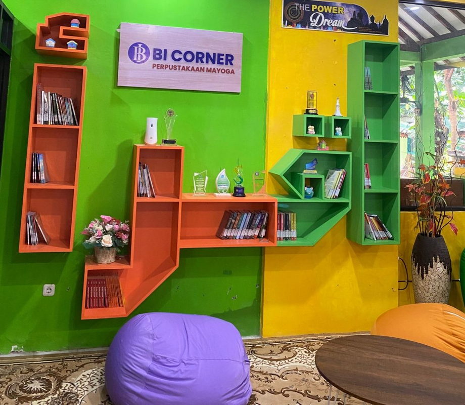 Ide BI corner muncul setelah Perpustakaan Mayoga mendapatkan bantuan secara materil dari Bank Indonesia untuk revitalisasi perpustakaan. Setelah sebelumnya disurvei oleh pegawai BI pada bulan November 2024. Bantuan dari Bank Indonesia kemudian dibelanjakan dalam bentuk sarana dan prasarana perpustakaan. Hasilnya ada buku bacaan sebanyak 205 eksemplar yang meliputi kategori fiksi dan non fiksi, printer, furniture meliputi sofa, meja, karpet, rak buku, rak sepatu, dan beanbag. Tak hanya itu, untuk mendukung fasilitas edukatif yang lain disediakan mainan edukasi, seperti boneka tangan, puzzle, lego, dan masih banyak lagi. (tik)
