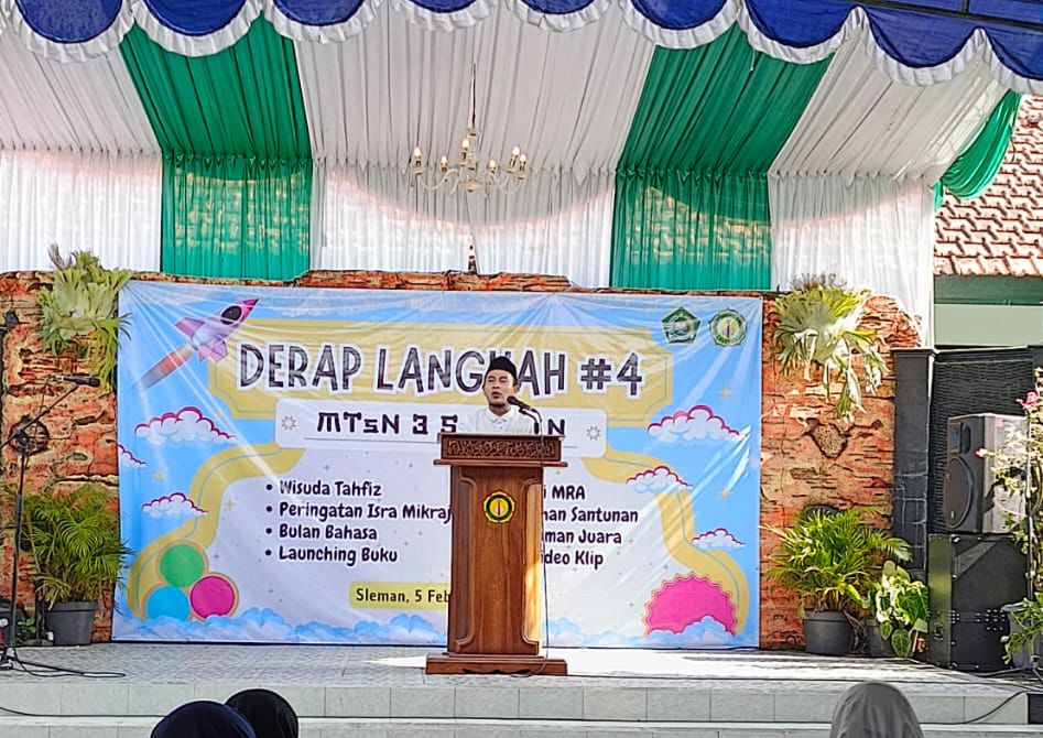 Kemenag Sleman News ( MTs Negeri 3 Sleman )— MTs Negeri 3 Sleman menggelar peringatan Isra Mikraj Nabi Muhammad saw. yang penuh makna pada Rabu (5/1/2025) di halaman madrasah. Acara yang meriah dan penuh hikmah ini sangat spesial karena merupakan rangkaian dari acara Derap Langkah Matsanega yang dihadiri oleh seluruh peserta didik, guru, pegawai madrasah, perwakilan orang tua, ketua komite, pengawas madrasah, seluruh jajaran pamong kecamatan Ngemplak juga Kepala Kantor Kementerian agama kabupaten dan kantor wilayah DIY. Isra Mikraj digelar dengan mengundang penceramah mengisi kiat sukses menjadi siswa juara. Momen menjadi momen penting untuk lebih mendekatkan diri kepada Allah Swt.
