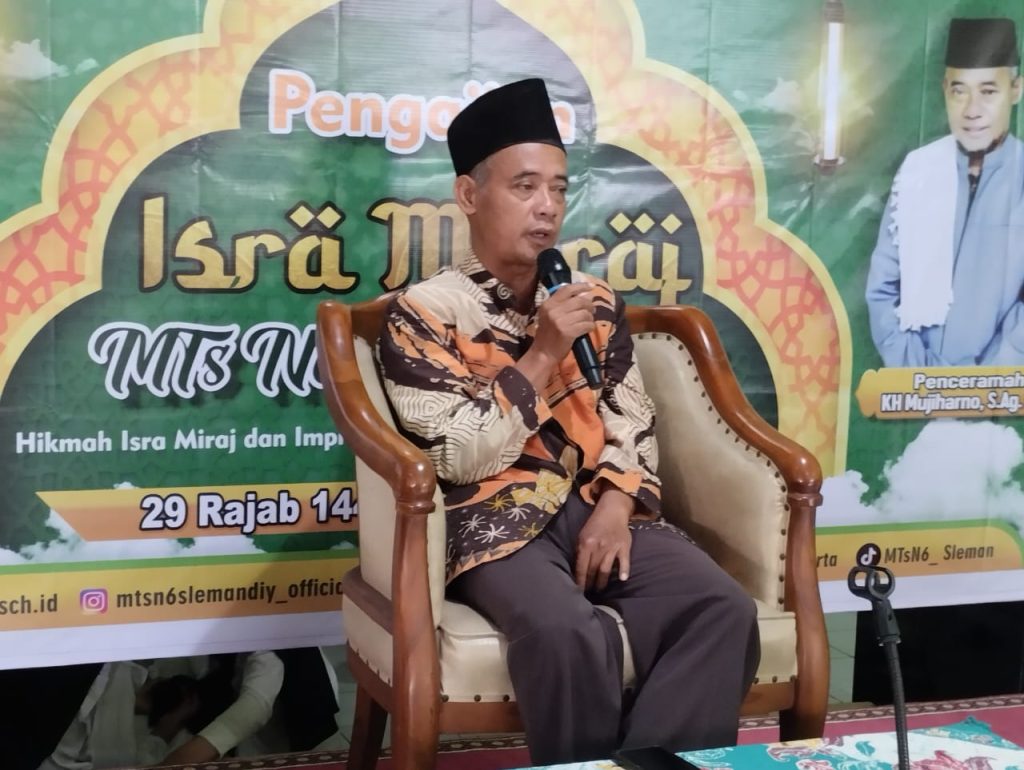 Kemenag Sleman News (MTsN 6 Sleman)–Peringatan Isra Mikraj Nabi Muhammad SAW di selenggarakan pada hari Jumat (31/1/2025) di Masjid Darul Adzkiya. Kegiatan ini diikuti seluruh guru dan siswa. KH Mujiharno memberikan tausiyah dalam peringatan Isra Mikraj tahun ini.