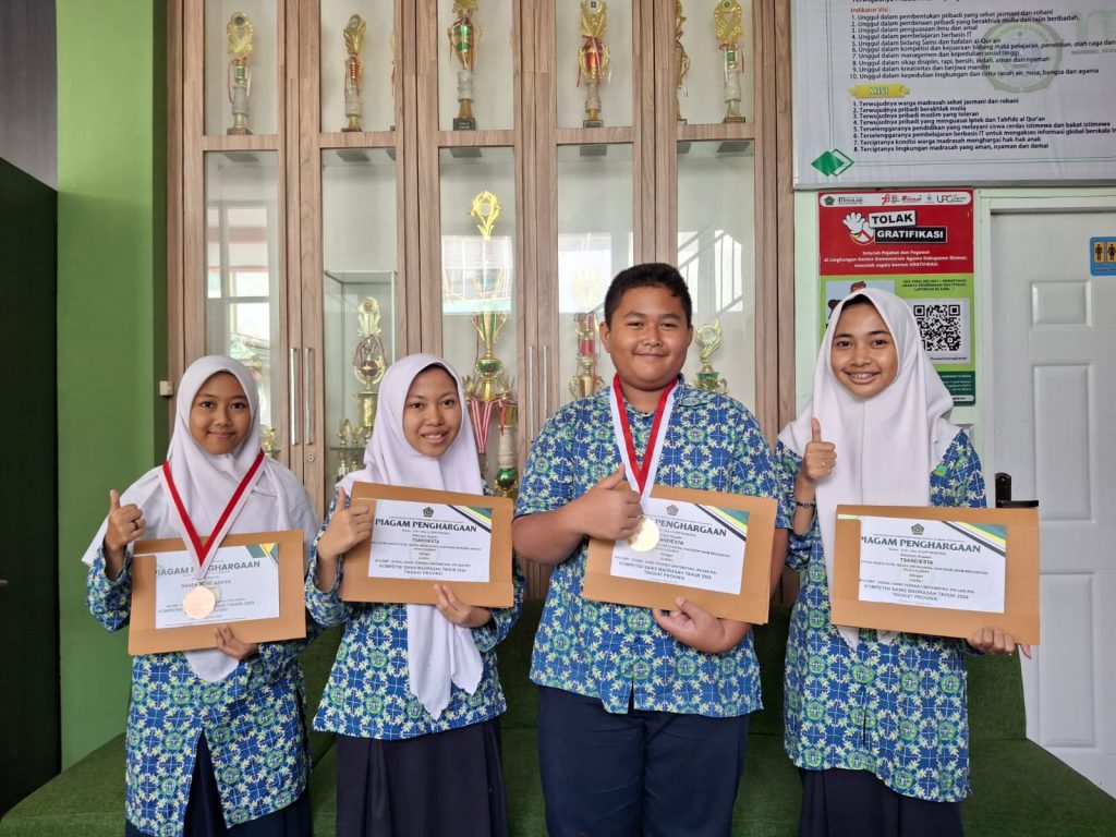 Kemenag Sleman News (MTsN 6 Sleman) – Jumat (24/01/25) empat siswa MTsN 6 Sleman peraih juara Kompetisi Sains Madrasah (KSM) Tingkat Provinsi atas nama Nada Nuril Adzkia kelas IX G peraih juara bidang IPA Terpadu, serta untuk kategori beregu atas nama Najwa Zafira Raisya Putri kelas IX A, Naura Dwi Khairina kelas IX B, dan Hozi Noor Anum Briliansyah kelas IX G peraih juara 1 bidang Sosial Sains Terpadu Tingkat Provinsi bersama para juara lainnya pada KSM Tingkat Provinsi menerima penghargaan dari Kemenag DIY.