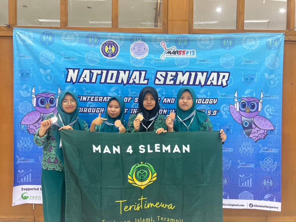 Sleman (MAN 4 Sleman) – Prestasi membanggakan kembali ditorehkan oleh tim riset MAN 4 Sleman dalam ajang Lomba Karya Tulis Ilmiah Nasional (LKTIN) MIPA Road to Scientific Paper and Seminar #12 (MARSS#12) yang diselenggarakan oleh Kelompok Studi Ilmiah MIPA Saintis FMIPA Universitas Negeri Yogyakarta (UNY). Kompetisi bergengsi ini berlangsung pada Sabtu–Ahad (15–16 Februari 2025) di Kampus UNY dengan mengusung tema “Integration of Science and Technology through Smart Innovation in Society 5.0.”