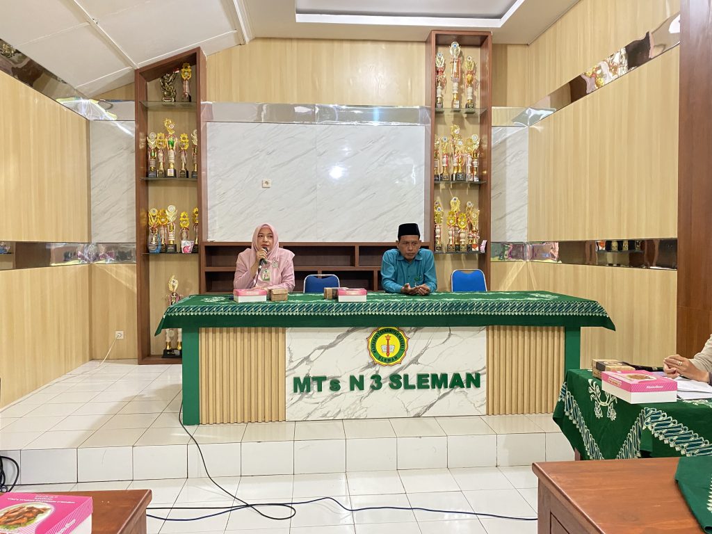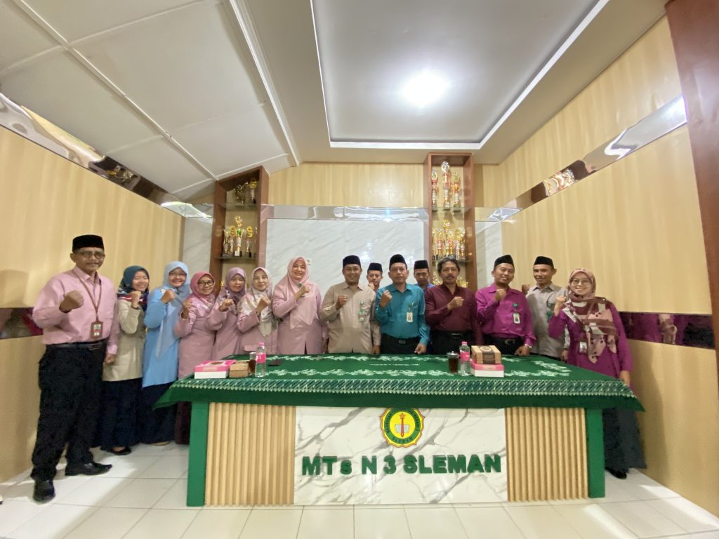 Suwardi, S.S., M.Pd. selaku kepala MTs N 3 Sleman menyambut hangat kedatangan rombongan MTs N 9 Sleman. “Kami keluarga besar MTs M 3 Sleman menerima KTU baru dengan legowo m, terbuka, mudah-mudahan dengan beliau menjadi bagian keluarga kami bisa berkolaborasi, bersinergi bersama-sama untuk madrasah ini,” tandas Suwardi.