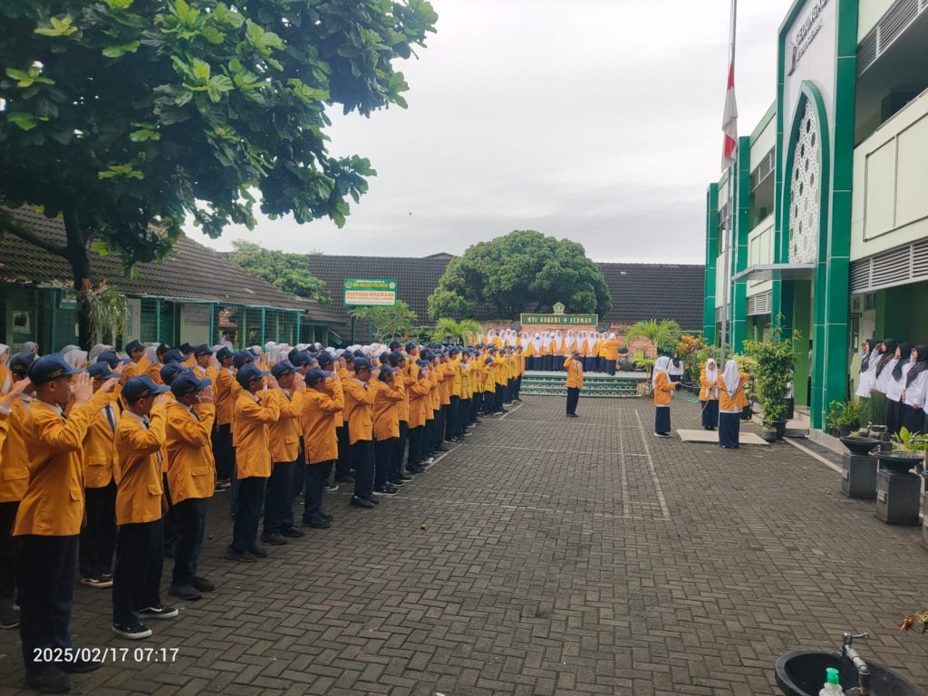 Kemenag Sleman News (MTsN 9 Sleman) – MTsN 9 Sleman menggelar upacara bendera rutin pada Senin (17/2/2025) pagi di halaman madrasah. Upacara yang dimulai pukul 07.00 WIB ini berlangsung dengan khidmat setelah sesi tahfidz takhasus.