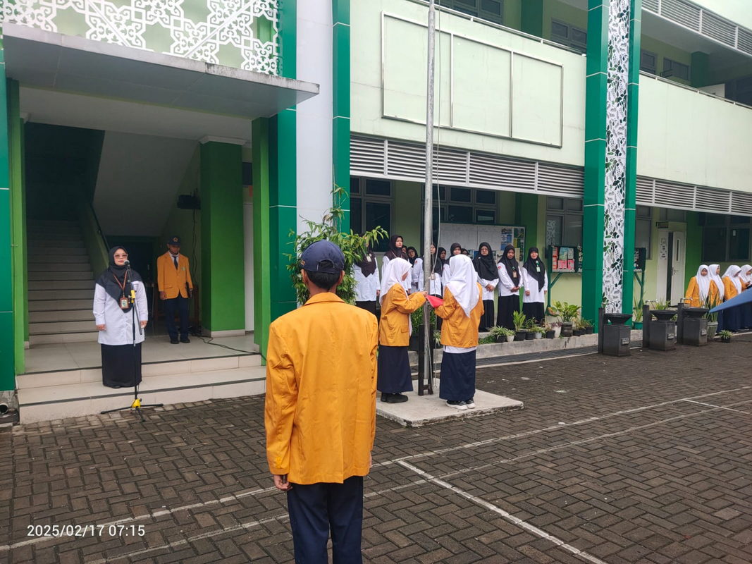 Petugas upacara kali ini berasal dari kelas VIIB dengan Irmayanti, guru Fiqih, bertindak sebagai pembina upacara. Dalam amanatnya, Irmayanti menyampaikan pesan penting kepada seluruh siswa-siswi MTsN 9 Sleman yang memasuki usia remaja untuk selalu menjaga diri dengan berpenampilan dan bertindak sesuai dengan norma agama serta peraturan madrasah. Ia menekankan bahwa kedisiplinan dan kepatuhan terhadap aturan merupakan bagian dari pembentukan karakter siswa yang unggul.
