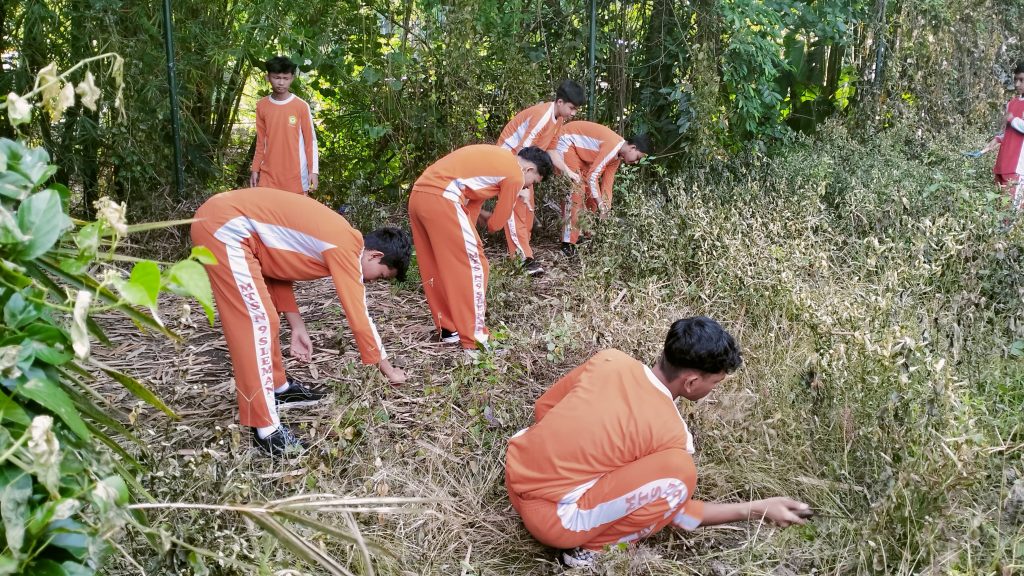 Para siswa terlihat bekerja sama membersihkan area yang sudah ditentukan. Salah satu siswa, Muhammad Ilham Januar Wijaya dari kelas VII B, mengaku senang bisa berpartisipasi dalam kegiatan ini. âMelalui kegiatan ini kami jadi lebih sadar akan pentingnya membuang sampah pada tempatnya dan menjaga kebersihan lingkungan bersama-sama,â ucapnya.