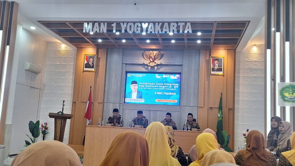 Kemenag Sleman News (MTsN 3 Sleman) — Komitmen untuk menciptakan zona integritas di lingkungan Kementerian Agama Republik Indonesia terus digaungkan sejak tahun 2012. Tepatnya pada 18 Desember 2012 Kementerian Agama menerbitkan Instruksi Menteri Agama Nomor 1 Tahun 2012 tentang Pelaksanaan Pembangunan ZI untuk mewujudkan Wilayah Bebas Korupsi (WBK) dan Wilayah Birokrasi Bersih dan Melayani (WBBM). Tentu saja hal tersebut berlaku di seluruh lingkungan kementrian tak terkecuali Kantor Kementerian Wilayah Daerah Istimewa Yogyakarta. MTsN 3 Sleman sebagai bagiannya menunjukan upaya pada komitmen yang sama. Rabu 19 Februari 2025, MTsN 3 Sleman turut menghadiri Pembinaan Zona Integritas bagi Madrasah Negeri se-DIY yang digagas Kanwil Kementerian Agaman DIY.