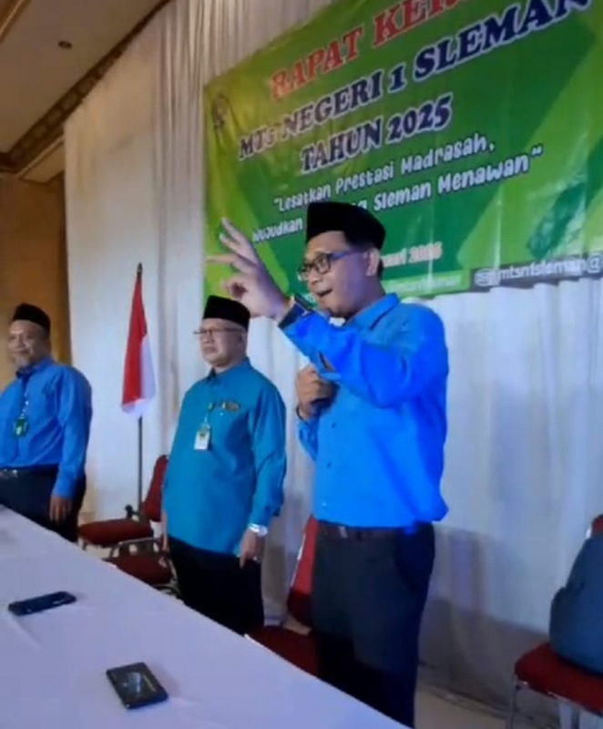 Hendy, Kepala Tata Usaha MTsN 1 Sleman, Tutup Raker dengan Lagu “Kemesraan”
