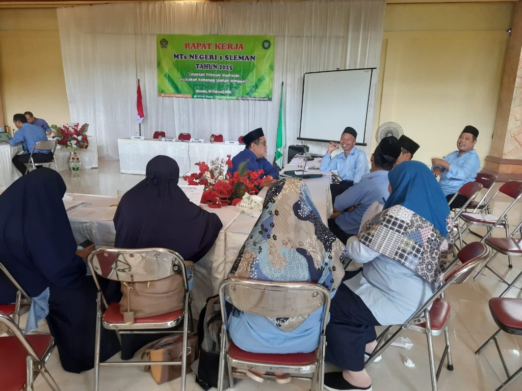 Kemenag Sleman News (Sleman (MTsN 1 Sleman) – MTsN 1 Sleman menggelar Rapat Kerja (Raker) tahunan yang bertempat di Rumah Makan Genduk Wulan, Jl. Godean, Gg. Gendengan, Ngampon, Margodadi, Seyegan, pada Jumat (21/2). Kegiatan ini dihadiri oleh Kepala Madrasah, Sutarjo, beserta seluruh guru dan pegawai, Ketua Komite, serta pengawas madrasah.