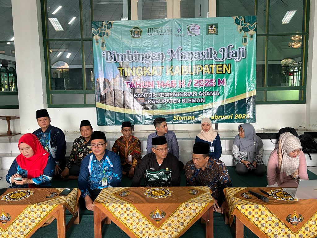 Kemenag Sleman News — Kantor Kementerian Agama Kabupaten Sleman menggelar kegiatan Bimbingan Manasik Haji tingkat Kabupaten Sleman tahun 1446 H/2025 M, Kamis, 27 Februari 2025, di Masjid Agung Sleman.