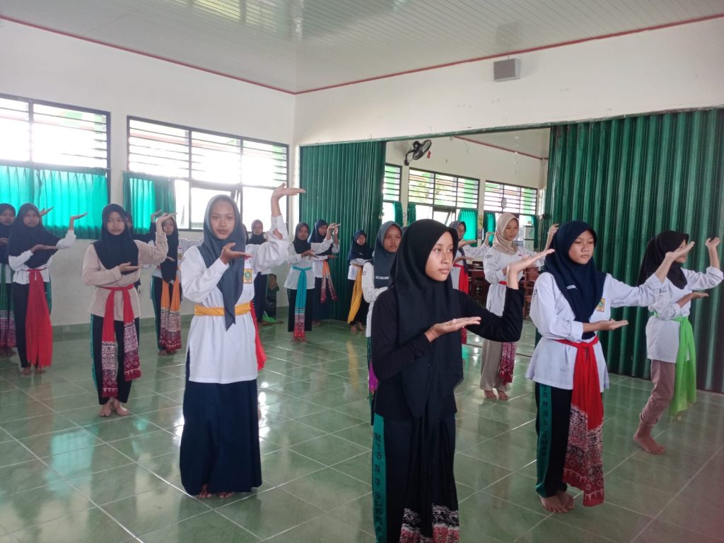 Kemenag Sleman News (MTs Negeri 3 Sleman) – Ekstrakurikuler Sekolah) di MTs Negeri 3 Sleman bertujuan untuk mengembangkan bakat dan minat siswa sesuai potensi masing-masing siswa. Salah satu ekstrakurikuler yang rutin dilaksanakan adalah seni tari setiap hari Selasa. Dengan penuh semangat pelatih dan peserta melaksanakan kegiatan penuh penjiwaan dan totalitas. Diiringi gamelan yang memikat rasa membawa hingar bingar para peserta untuk menghentakkan kaki melangkah ke depan belakang meloncat ke kanan kiri dan menyabetkan selendang memperindah gemulainya gerakan.