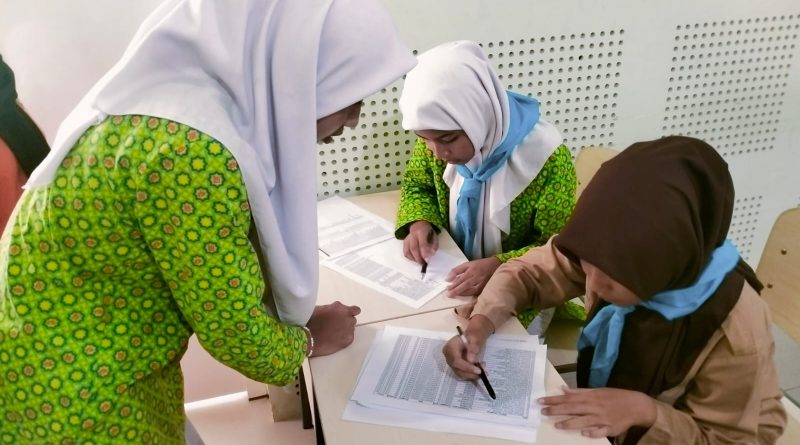 SelengkapnyaSleman (MTsN 9 Sleman)- Palang Merah Remaja (PMR) MTsN 9 Sleman turut aktif membantu kelancaran pelaksanaan imunisasi HPV yang digelar