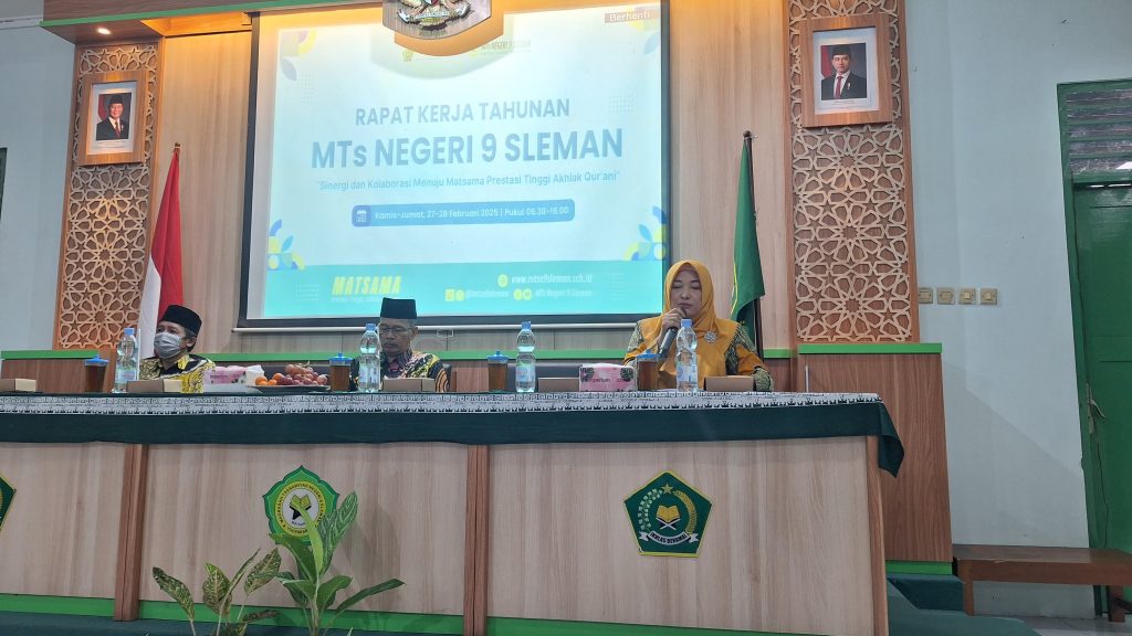 Kemenag Sleman News (MTsN 9 Sleman)- MTsN 9 Sleman menggelar rapat kerja (raker) pada Kamis (27/02/2025) yang dimulai sejak pukul 07.00 WIB. Kegiatan rapat kerja ini berlangsung di ruang keterampilan madrasah. Raker ini juga dihadiri oleh Sidik Pramono selaku Kepala Kantor Kementerian Agama Kabupaten Sleman, Tulus Dumadi seklau Kasi Dikmad, Ketua Komite, Kepala Tata Usaha, Bapak/Ibu Guru, dan pegawai MTsN 9 Sleman.