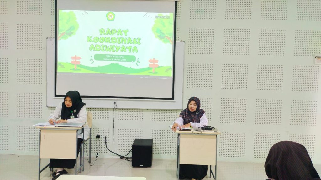 Kemenag Sleman News (MTsN 9 Sleman) —Tim Adiwiyata MTsN 9 Sleman menggelar rapat koordinasi pada Selasa (4/3/2025) di ruang multimedia. Rapat ini diikuti oleh tim inti dan para koordinator dengan dipandu oleh Dina Andriyanti selaku Koordinator Tim Adiwiyata. Kegiatan ini bertujuan untuk menyusun strategi dan memastikan kesiapan madrasah dalam menghadapi penilaian adiwiyata tingkat nasional bulan Juni mendatang.