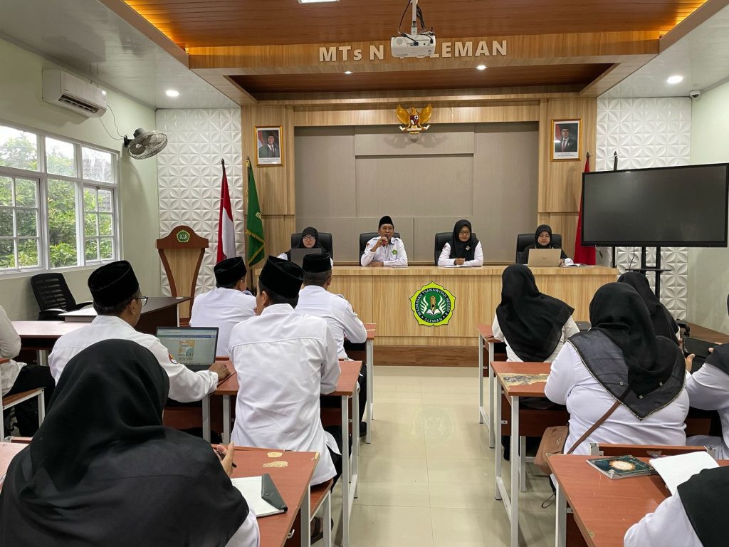 Kemenag Sleman News (MTsN 4 Sleman) – MTsN 4 Sleman menggelar rapat persiapan program pembelajaran keagamaan dalam rangka menyambut bulan suci Ramadan 1446 H. Rapat ini diikuti oleh seluruh guru dan pegawai di ruang kelas IX E, Senin (3/3/2025). Kegiatan ini bertujuan untuk mematangkan konsep pembelajaran yang lebih bermakna dan mendalam bagi para siswa selama bulan Ramadan.