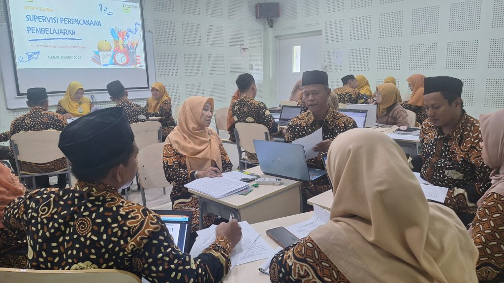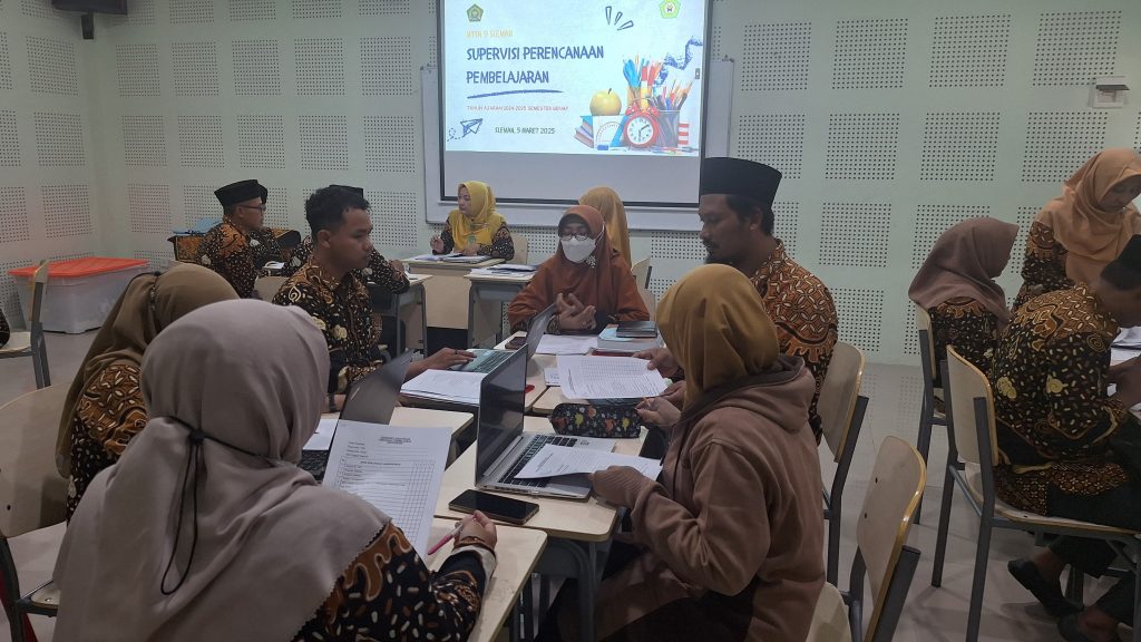Kemenag Sleman News (MTsN 9 Sleman)- Dalam upaya meningkatkan kualitas pembelajaran, Siti Juwariyah selaku Kepala MTsN 9 Sleman bersama tim asesor melaksanakan supervisi akademik terkait perencanaan pembelajaran guru di semester genap Tahun Ajaran 2024/2025. Kegiatan ini berlangsung di ruang multimedia pada Rabu (5/3/2025) pukul 13.00 WIB dengan dipandu oleh asesor masing-masing kelompok guru.