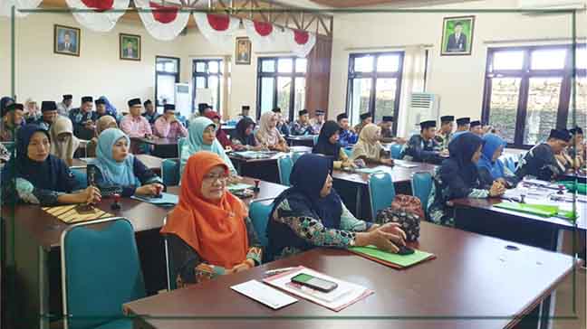 Hadir dalam kegiatan ini Kepala Kankemenag Sleman H. Sidik Pramono, S.Ag., M.Si, Kasi Pendidikan Madrasah Drs. H. Tulus Dumadi, MA, para pengawas madrasah, serta 58 kepala MTs dan MA swasta se Kabupaten Sleman
