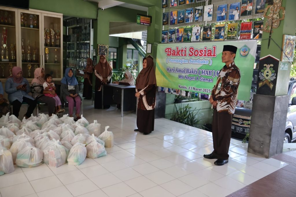 Kemenag Sleman News – (MTsN 8 Sleman) Dalam rangka peringatan Hari Amal Bakti (HAB) ke-47, MTsN 8 Sleman menggelar kegiatan bakti sosial berupa pemberian bantuan sembako kepada masyarakat yang membutuhkan. Kegiatan ini dilaksanakan pada Kamis (13/3/2025) di hall madrasah dan dihadiri oleh para siswa, guru, tenaga kependidikan, serta masyarakat sekitar.