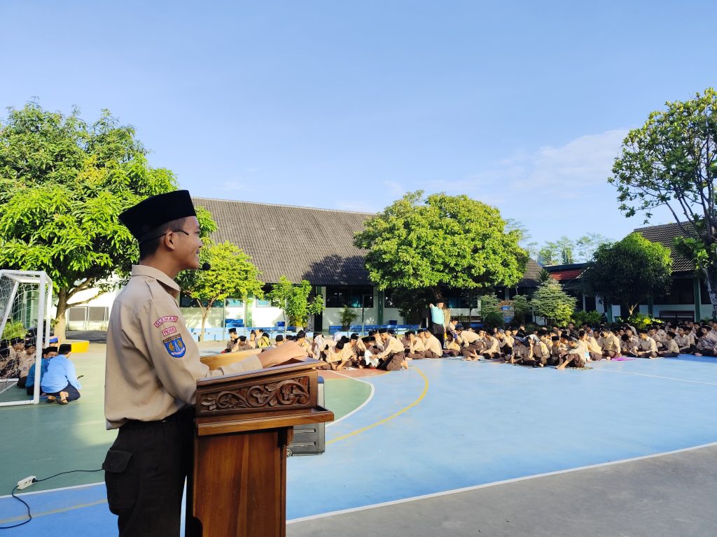 Kemenag Sleman News (MTsN 3 Sleman) – Kuliah tujuh menit (Kultum) Ramadan yang diselenggarakan di MTsN 3 Sleman pada Jumat (14/3/2025) berlangsung dengan penuh semangat dan mengundang antusiasme para siswa yang menyimak. Kegiatan kultum siswa ini merupakan rangkaian dari agenda kegiatan bulan Ramadan di madrasah. Melalui kegiatan latihan kultum atau kuliah tujuh menit, diharapkan dapat melatih kemampuan berpidato/ceramah peserta didik. Latihan ini merupakan bagian dari strategi untuk memperkuat kemampuan berkomunikasi, yang dianggap penting bagi perkembangan holistik peserta didik. Dengan memberikan kesempatan kepada siswa untuk berbicara di depan umum dengan baik dan menarik.