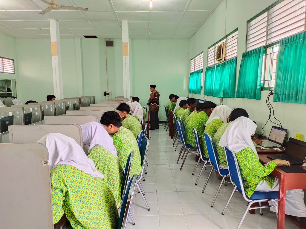 Kegiatan ini dibagi menjadi 2 sesi, sesi pertama pukul 07.30-09.30 dan sesi kedua pukul 10.00-12.00 secara tatap muka langsung di tiga ruang Laboratorium Komputer Madrasah yakni ruang TIK 1, TIK 2, dan TIK 3 dengan 6 petugas pengawasan.
