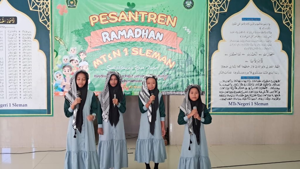 Kemenag Sleman News (MTs N 1) Dalam rangkaian Pesantren Ramadan 1446 H, MTsN 1 Sleman menggelar Lomba Lagu Islami Beregu yang berlangsung pada 19 dan 20 Maret 2025. Lomba ini diikuti oleh perwakilan dari setiap kelas VII dan VIII, dengan menampilkan penampilan vokal yang memukau dan penuh penghayatan.