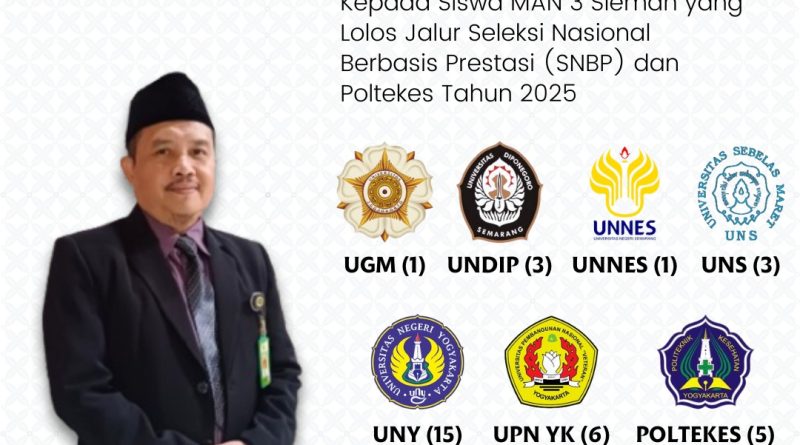 SelengkapnyaKemenag Sleman News (MAN 3 Sleman) βPengumuman Seleksi Nasional Berbasis Prestasi (SNBP) resmi dirilis pada Selasa (18/3/2025) oleh panitia Seleksi