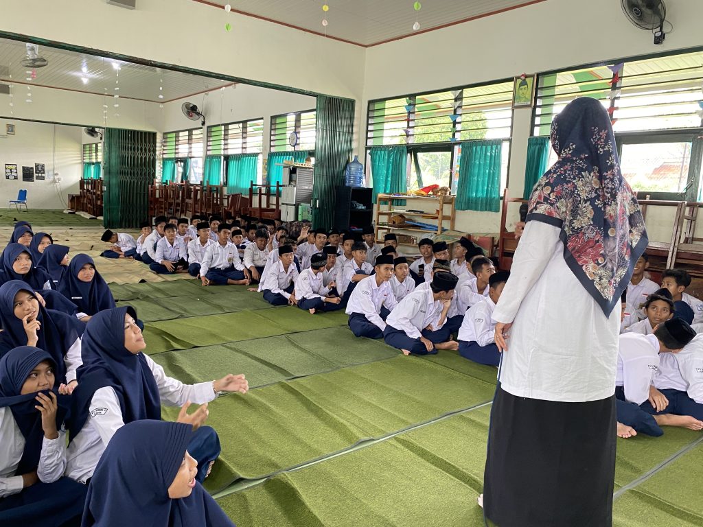 Sleman (MTs Negeri 3 Sleman) — Sebelum mengikuti kegiatan Pesantren Ramadan, para siswa kelas 7 MTs Negeri 3 Sleman diberikan pembekalan. Pembekalan tersebut disampaikan oleh Muflikhatun Ni’mah, S.Pd. di aula madrasah usai pembelajaran berakhir. Selasa (18/3/2025) para siswa antusias mengikuti pembekalan agar bisa mengikuti kegiatan Pesantren Ramadan dengan baik.