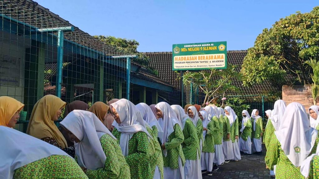 Kemenag Sleman News (MTsN 9 Sleman)- Hari pertama masuk sekolah usai libur Idul fitri di MTsN 9 Sleman diwarnai dengan suasana haru dan penuh keakraban dalam kegiatan halalbihalal yang digelar dalam rangkaian kegiatan apel pagi. Kegiatan ini berlangsung pada hari Rabu (9/4/2025). Momen ini menjadi ajang silaturahmi dan saling memaafkan antara siswa, guru, dan seluruh warga madrasah yang dipimpin langsung oleh Warsun Munawir selaku Wakil Kepala bidang Kesiswaan MTsN 9 Sleman.