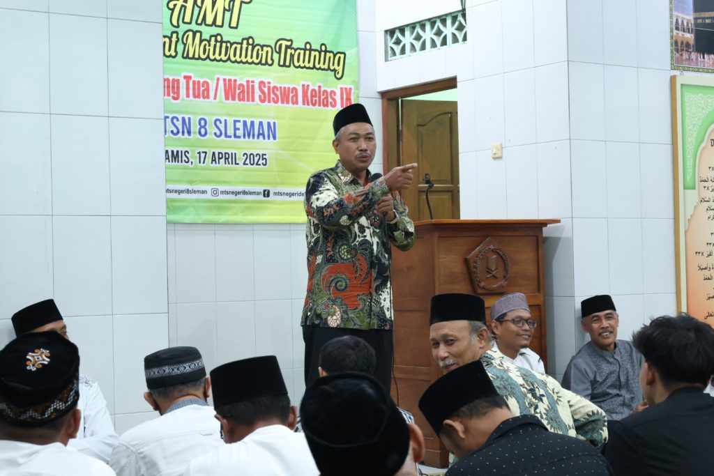 Kemenag Sleman News (MTsN 8 Sleman) – Dalam rangka menyambut Asesmen Madrasah dan ASPD yang akan berlangsung pada 21-25 April 2025 serta awal Mei 2025, MTsN 8 Sleman menggelar kegiatan Achievement Motivation Training (AMT) untuk seluruh siswa kelas IX. Acara ini juga diisi dengan rangkaian acara parenting, mujahadah dan doa bersama yang diselenggarakan di Masjid Nurul Ummah, serta dihadiri oleh siswa, orang tua/wali, guru, dan karyawan MTsN 8 Sleman pada Kamis (17/04//2025).