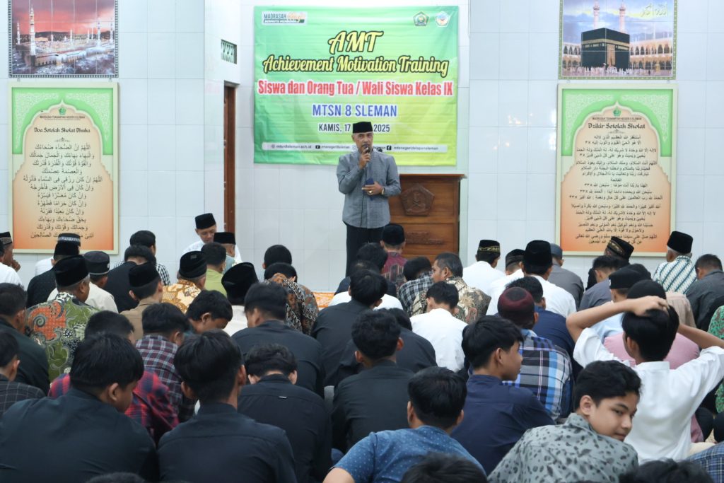 Kegiatan mujahadah dan doa bersama ini menjadi bagian dari rangkaian persiapan menjelang ujian praktik, Asesmen Madrasah, dan ASPD bagi siswa kelas IX. Acara juga diisi dengan sambutan Kepala MTsN 8 Sleman, Agus Sholeh, S.Ag., penyampaian informasi ujian oleh Wakil Kepala Bidang Kurikulum Muhammad Arwani Munib, S.Th.I, M.Pd., serta Achievement Motivation Training oleh Akhmad Farid, S.Pd.I, M.Pd.
