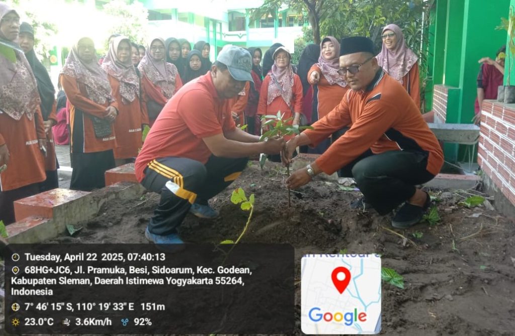 Penanaman pohon secara simbolis dilakukan di halaman MAN 1 Sleman dan disaksikan oleh seluruh guru, pegawai, serta siswa madrasah. Suasana penuh semangat dan kepedulian terhadap bumi tampak dari antusiasme peserta dalam menanam pohon di berbagai titik di area madrasah, termasuk di sekitar lingkungan asrama Al Uswah MAN 1 Sleman.