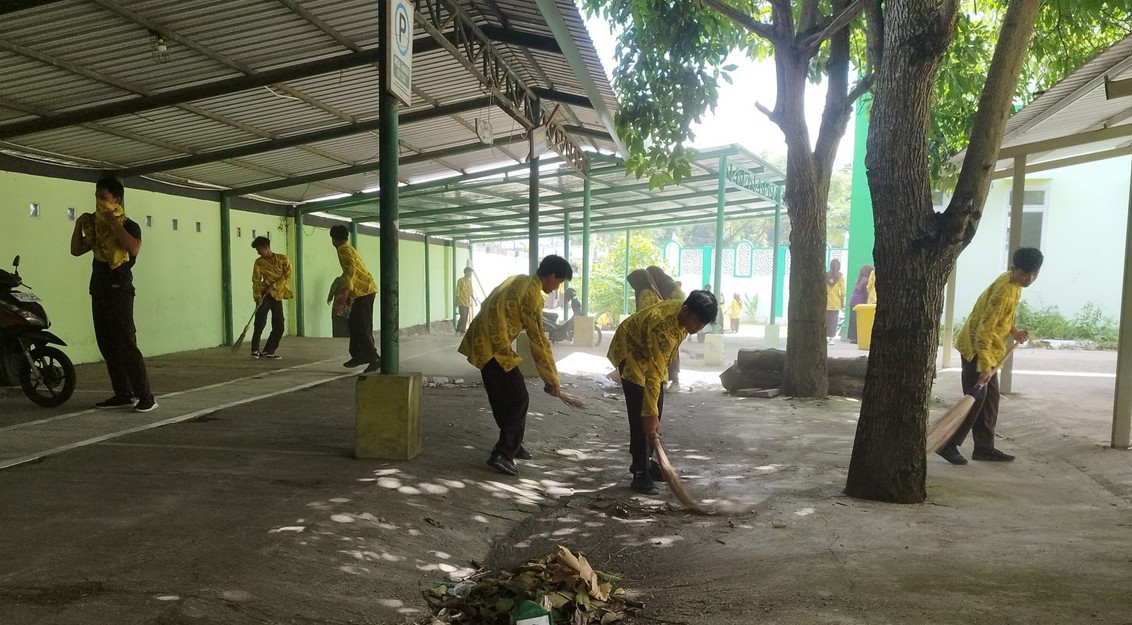 Seluruh Civitas MAN 5 Sleman Semangat Gotong Royong Bersihkan Lingkungan Sambut MAN 5 Sleman Bersholawat