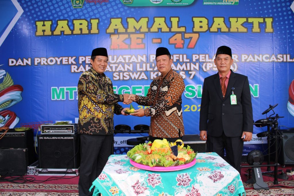 Setelah memberikan sambutan, acara berikutnya yaitu pemotongan tumpeng bersama Kepala Madrasah dan Ketua Komite. Sebagai simbol bahwa Indonesia kaya dengan budaya sesuai dengan tema P5RA dan diakhiri dengan launching Tsandigima (Tsandiesta Smart Digital Madrasah). (rph)