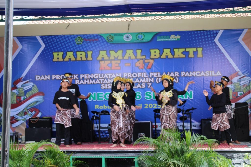 Kemenag Sleman News (MTsN 6 Sleman)- Perayaan HAB MTsN 6 Sleman yang ke-47 dimeriahkan pentas unjuk seni P5RA kelas 7. Unjuk seni merupakan bagian dari tahap aksi kegiatan P5 dengan tema Bhinneka Tunggal Ika. Kegiatan dilaksanakan di halaman MTsN 6 Sleman pada Rabu (30/4/2025).