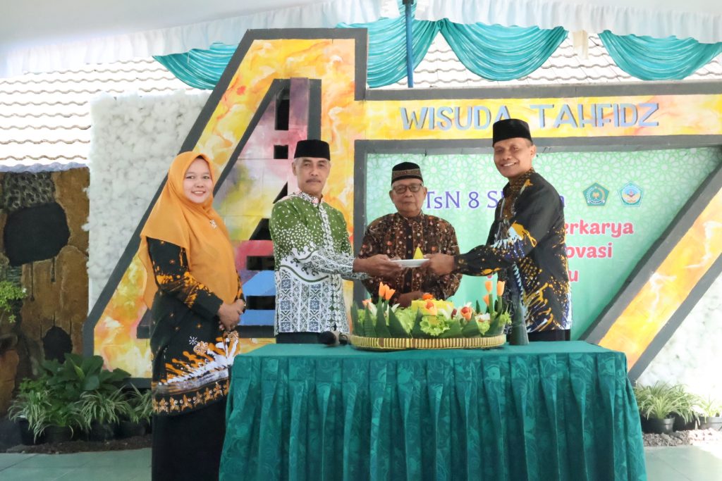 Setelah doa dipanjatkan, Kepala MTsN 8 Sleman, Agus Sholeh, S.Ag., didampingi oleh Ketua Komite MTsN 8 Sleman, Tyas Endarto Budi Prayitno, S.Ag., melaksanakan pemotongan tumpeng. Potongan pertama tumpeng secara simbolis diserahkan kepada Ketua Komite, menandai rasa syukur atas perjalanan panjang madrasah yang telah mencapai usia 47 tahun.
