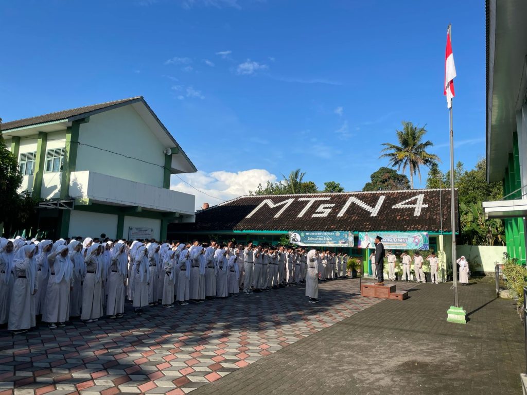 Kepala MTsN 4 Sleman, Harsoyo, S.Pd., bertindak sebagai pembina upacara. Dalam amanatnya, beliau membacakan pidato Menteri Pendidikan Dasar dan Menengah Republik Indonesia, Abdul Mu’ti. Dengan suara lantang dan penuh semangat, Harsoyo menyampaikan bahwa Presiden Prabowo melalui Asta Cita keempat menegaskan komitmennya untuk membangun sumber daya manusia yang kuat, yang menjadi aktor dan agen perubahan dalam mewujudkan Indonesia yang adil dan makmur.