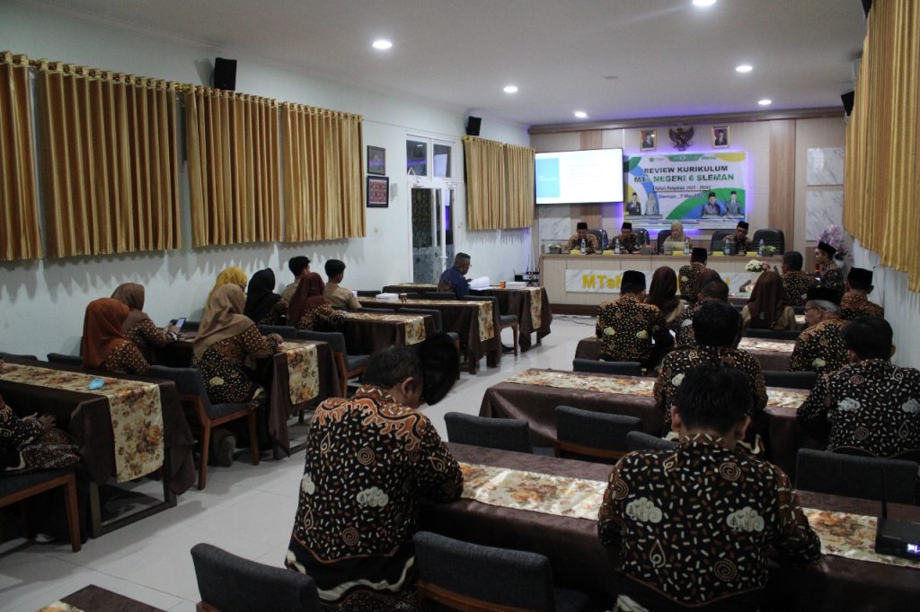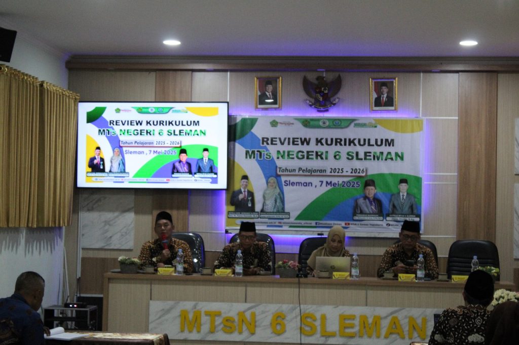 Kankemenag Sleman News (MTsN 6 Sleman)- Pukul 13.00 WIB bertempat di Aula Boarding MTsN 6 Sleman diselenggarakan Reviu Kurikulum MTsN 6 Sleman Tahun Ajaran 2025/2026. Agenda ini rutin digelar pada jelang awal tahun ajaran baru sebagai momen evaluasi dan perencanaan kurikulum yang berlangsung di madrasah. Selain guru dan pegawai MTsN 6 Sleman, acara dihadiri oleh Anita Isdarmini, S.Pd., M.Hum. sebagai Sub Koordinator Kurikulum dan Kesiswaan Bidang Pendidikan Madrasah. Drs. Tulus Dumadi, MA-Kasi Dikmad Kankemenag Sleman, Nur Wahyudin Al Azis, S.Pd., M.Pd. sebagai Pendamping Satuan Pendidikan, Komite Madrasah, dan segenap perwakilan siswa.