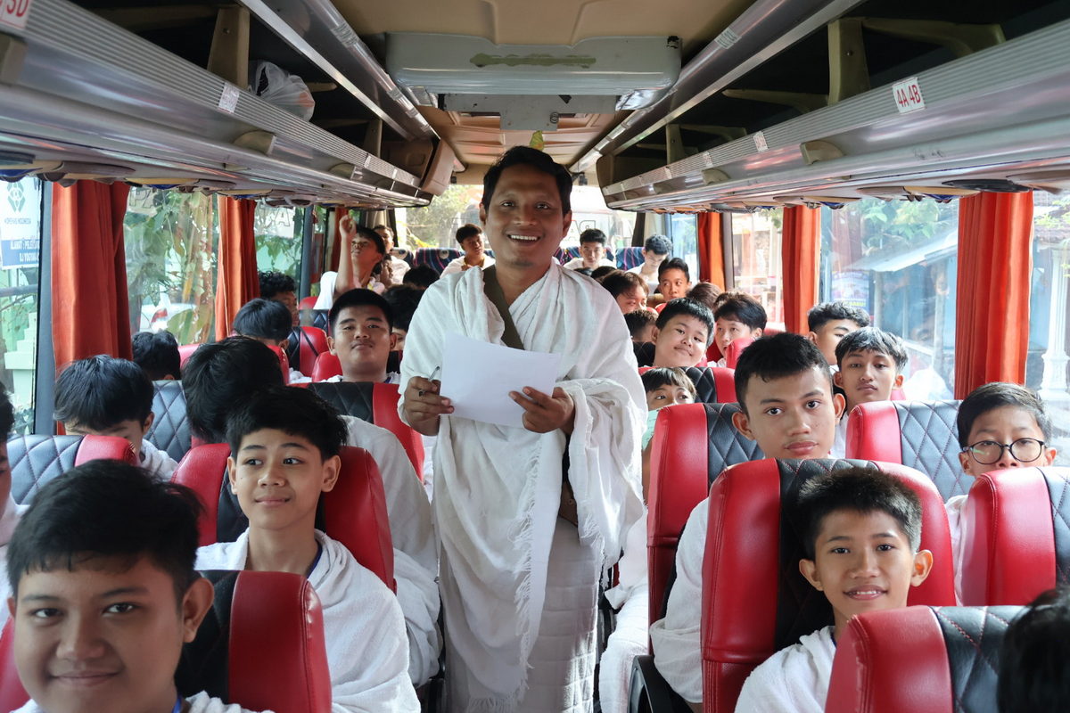 Kemenag Sleman News – (MTsN 8 Sleman) Menjelang keberangkatan siswa kelas 8 MTsN 8 Sleman ke Boyolali untuk mengikuti kegiatan latihan manasik haji pada Kamis (8/5/2025), Wakil Kepala Madrasah bidang Kurikulum, Muhammad Arwani Munib, S.Th.I., memberikan arahan khusus kepada para peserta. Pengarahan ini dilakukan di dalam bis sebelum rombongan bertolak menuju lokasi kegiatan, dengan tujuan mempersiapkan mental dan sikap para siswa agar dapat mengikuti seluruh rangkaian manasik dengan sungguh-sungguh.