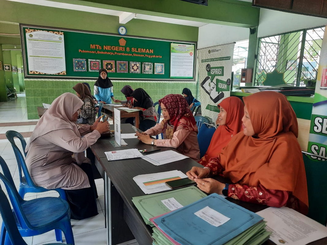 Kemenag Sleman News (MTsN 8 Sleman) — Setelah melalui tahapan seleksi Computer Based Test (CBT) dan wawancara, MTsN 8 Sleman melaksanakan proses daftar ulang Penerimaan Peserta Didik Baru (PPDB) Jalur Prestasi Akademik dan Non-Akademik pada Kamis (15/05/2025) hingga Jumat (16/05/2025). Sebanyak 39 calon peserta didik dinyatakan diterima melalui jalur ini dan mengikuti daftar ulang secara langsung di kampus MTsN 8 Sleman.