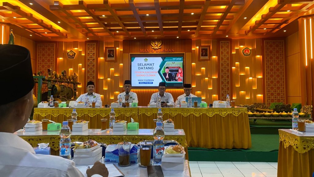 Rapat ini dihadiri oleh Kepala Kantor Kementerian Agama Kabupaten Sleman, H. Sidik Pramono, S.Ag., M.Si., Kepala Subbagian Tata Usaha, H. Sangaji, S.HI., Kasi Pendidikan Madrasah, Drs. H. Tulus Dumadi, M.A., serta Ketua Pokjawas Madrasah, Drs. H. Daryono, M.Pd. Hadir pula kepala madrasah dari jenjang MI, MTs, dan MA se-Kabupaten Sleman, kepala tata usaha, ketua KKRA, KKMI, analis SDMA, PK APBN, pranata humas, perencana, serta pelaksana seksi pendidikan madrasah.