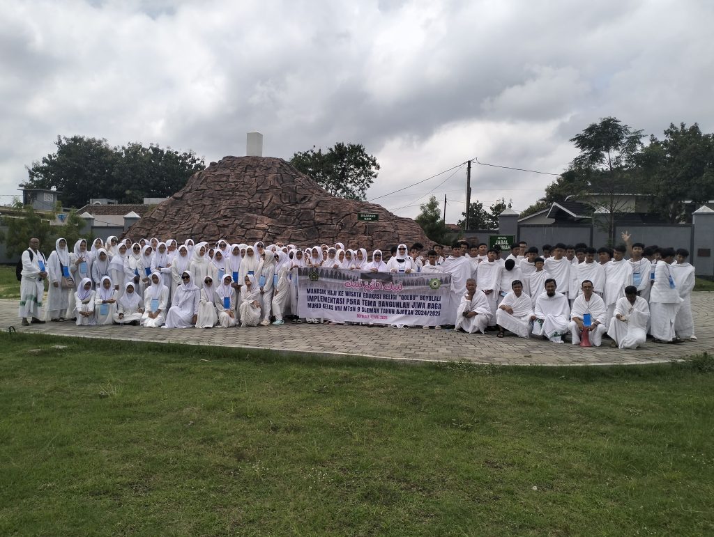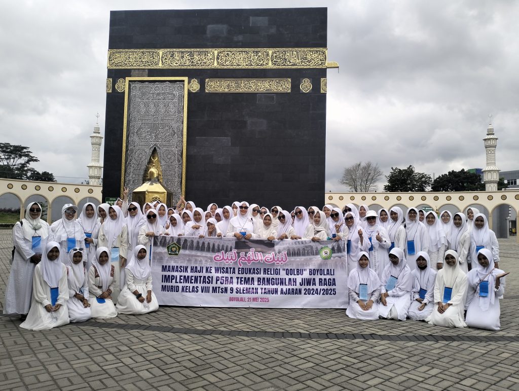 Kemenag Sleman News (MTsN 9 Sleman)- MTsN 9 Sleman menyelenggarakan kegiatan manasik haji dan umroh bagi siswa kelas VIII pada hari Rabu (21/5/2025) di Wisata Edukasi Religi “Qolbu” Boyolali. Kegiatan ini merupakan bagian dari implementasi Projek Penguatan Profil Pelajar Rahmatan Lil ‘Alamin (P5RA) dengan tema “Bangunlah Jiwa dan Raga”, yang menjadi fokus P5RA semester genap bagi siswa kelas VIII.