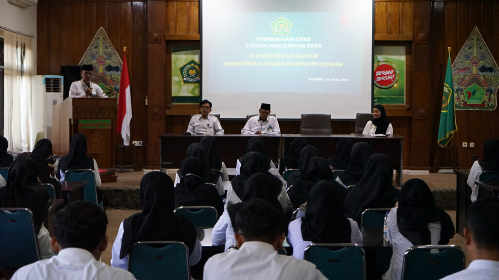 Sleman (Kemenag Sleman News) – Usai menerima SK penempatan beberapa waktu lalu, sebanyak 79 CPNS Tahun 2024 dengan formasi: guru (37), pengawas jaminan produk halal (4), penghulu (10), penyuluh agama (18) dan pranata komputer (10) mengikuti Pembinaan dan Pengarahan yang diselenggarakan oleh Kantor Kementerian Agama Kabupaten Sleman. Kegiatan berlangsung Selasa (10/6/2025) di Aula lantai 3 kantor setempat.