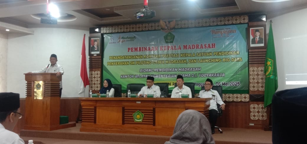 Kemenag Sleman News, Yogyakarta (MTs Negeri 3 Sleman) — Kantor Wilayah Kementerian Agama Daerah Istimewa Yogyakarta selenggarakan pembinaan kepala madrasah di lingkungan DIY. Pembinaan tersebut sekaligus penandatangan kontrak prestasi oleh masing-masing kepala madrasah. Dilaksanakan di Kanwil Kemenag DIY, pembinaan berlangsung pada Selasa, 6 Mei 2025.
